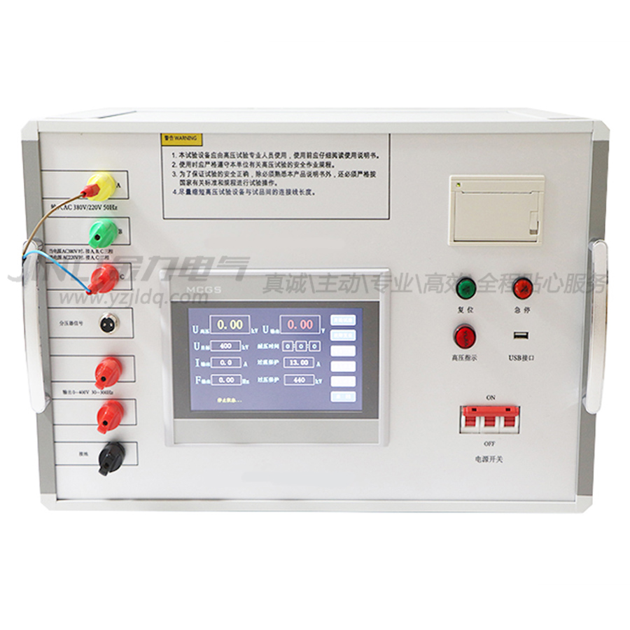 本儀器輸出為正弦波,波形失真度小, 波形畸變率 < 3 %。全套多倍頻感應(yīng)耐壓測(cè)試儀體積小,波形好,輸出穩(wěn)定。 該裝置的核心組件——變頻電源采用高性能微處理器控制,全中文菜單顯示,具有自動(dòng)化程度高,保護(hù)迅速可靠,人機(jī)界面友好等優(yōu)點(diǎn)。在使用前請(qǐng)務(wù)必仔細(xì)閱讀本使用說(shuō)明,以免誤操作對(duì)被試品及試驗(yàn)裝置造成不必要的損壞。