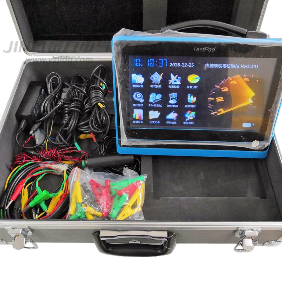 JL1203平板式三相電能表現場校驗儀采用高端嵌入式控制板,實時多任務操作系統,以10寸大屏幕真彩色液晶作為顯示器,全中文圖形化操作界面并配有漢字提示信息、多參量顯示的液晶顯示界面,人機對話界面友好,向量圖顯示及接線判斷為檢查電路的正確性提供了可靠的依據。高分辨率電容觸控屏做為人機操作途徑,操作手感好,簡便易學。儀器內置大容量掉電不丟失數據存儲器,可將現場校驗數據保存下來,可存儲60000組(可無限擴展)現場校驗結果,可提供后臺微機管理軟件,通過U盤將記錄文件導入計算機,實現微機化管理。